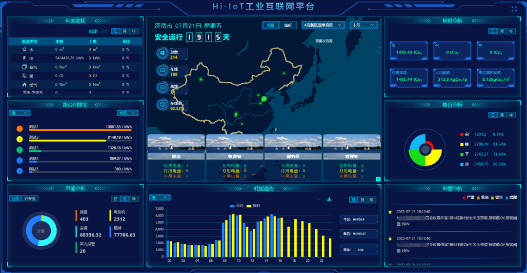 和遠智能基于“云、邊、端”軟硬智一體化的能碳雙控平臺積極響應碳達峰、碳中和目標,加快信息采集、感知、處理、應用等環節的建設,推進各能源數據共享和價值挖掘。平臺可實時準確地獲悉綜合能耗監測、碳排/標煤分析等數據動態,采取可視化大屏圖表對比分析,實現能源監測、管理、預警、優化等綜合管控,不斷推進節能降耗的改造升級和能源結構的優化提升。
