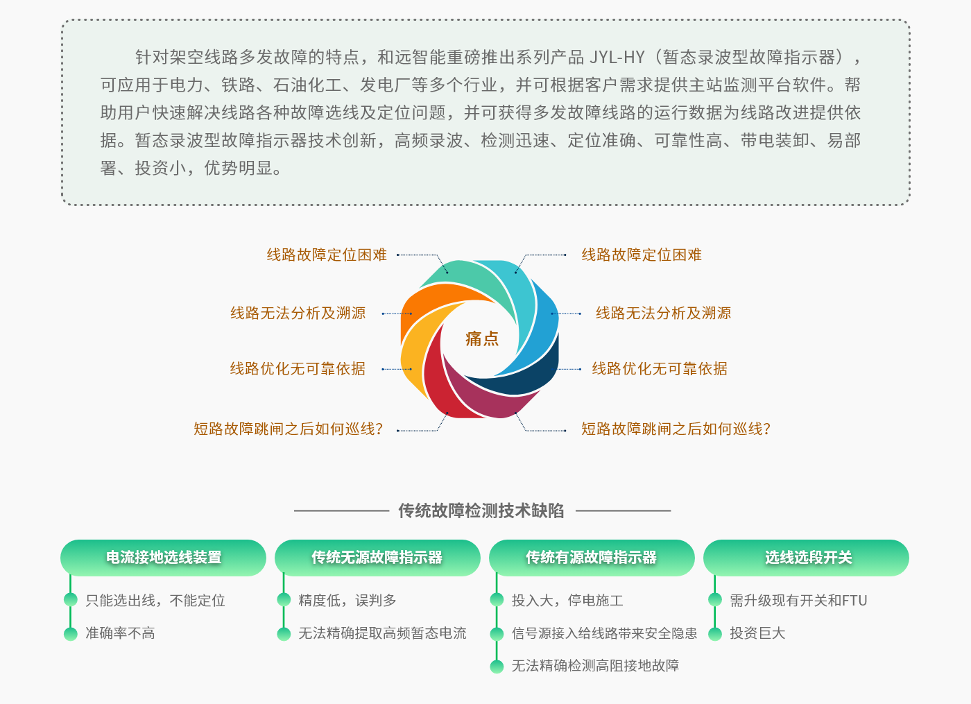 作為智能電網建設的重要環節,配電網在電力系統中起著至關重要的作用。在我國,配電網在整個電力系統中尚處于非常薄弱的環節,配電網絡結構復雜、線路長、分支多,用戶遭遇的停電,90%以上由配電系統故障引起,其中瞬時性故障、弧光故障、高阻故障占比超過50%,且故障查找、分析和運行數據的獲取非常困難。
